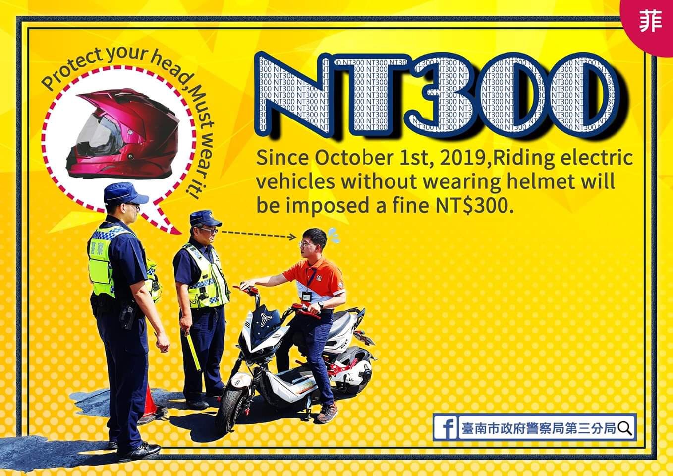 10/02/201910/02/2019nursingbank2019年10月1日起,騎電動機車不戴安全帽者,罰款新台幣300元政府宣導, 雇主專區, 看護專區2 重要政令佈達: 自2019年10月1日起,騎電動機車不戴安全帽者,將罰款新台幣300元。